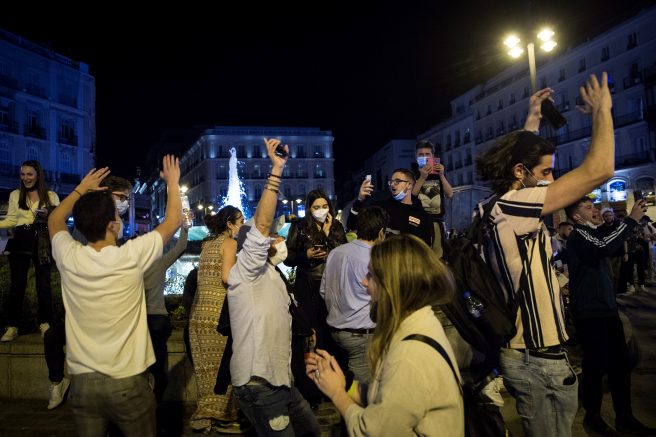 在首都马德里,尽管餐饮场所按照规定在午夜零时关闭,但众多居民在街头和广场上大量聚集,巴塞罗那、塞维利亚等多数西班牙城市情况同样如此。