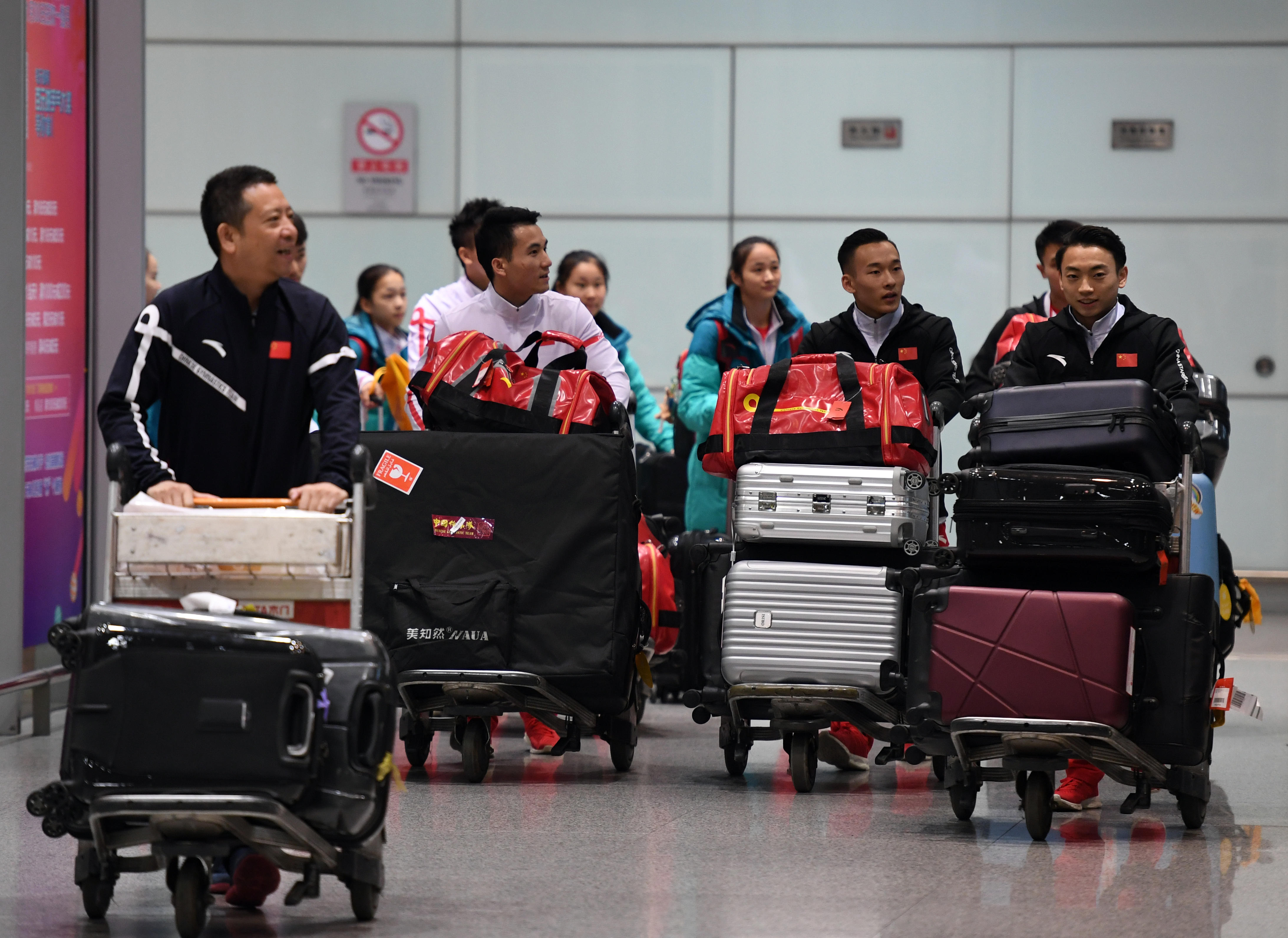 资料图:中国体操队载誉回国。新华社记者孔卉摄