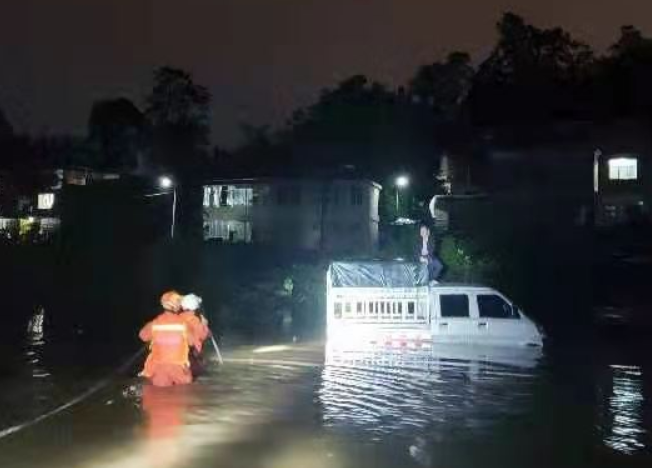 在小河区清水江路一下拉槽内由于积水严重,过往车辆被困水中,有人员被困,黔江路消防救援站随即出动1辆消防车5名指战员赶赴现场开展救援。在现场,积水道路水深达65厘米,救援人员立即乘坐皮划艇营救车内被困群众。