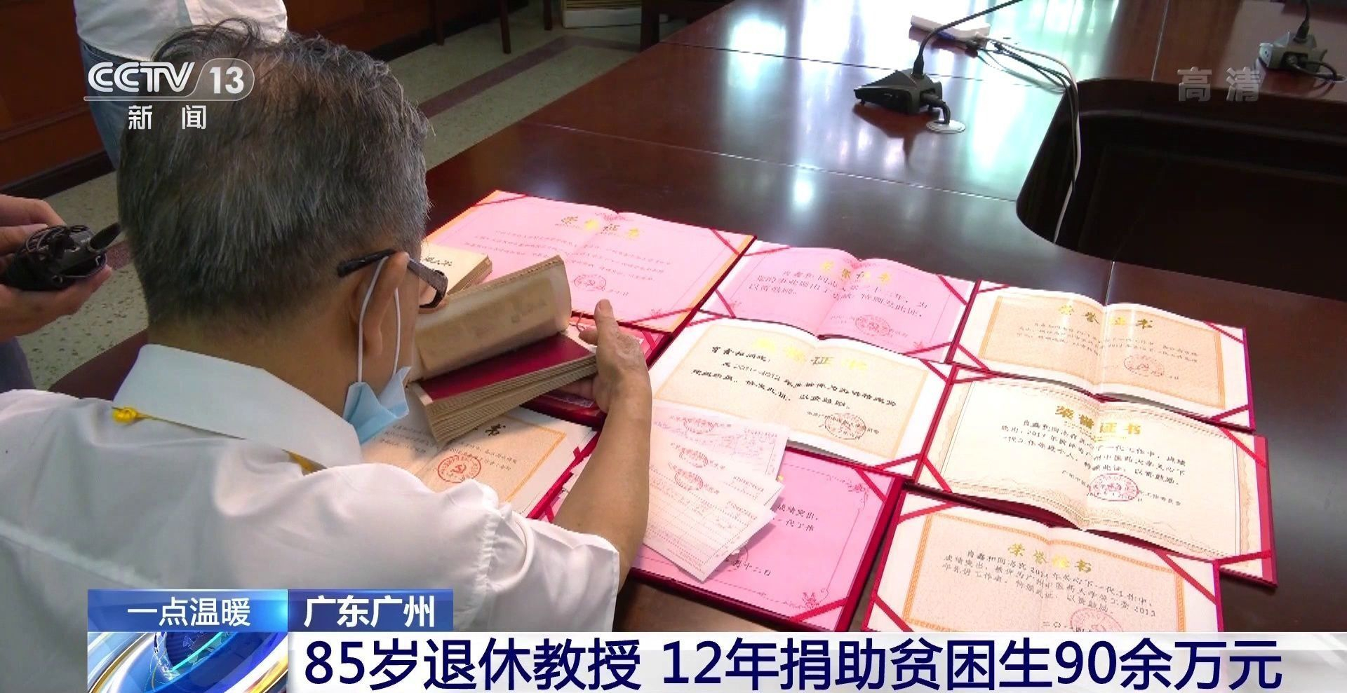 广州中医药大学85岁的退休教授肖鑫和,从2009年开始,他一直坚持将自己的稿费和奖金捐给学校的贫困学生。12年来,学校的助学基金会累计收到肖鑫和教授的捐款共计23次,总金额超过了90万元。