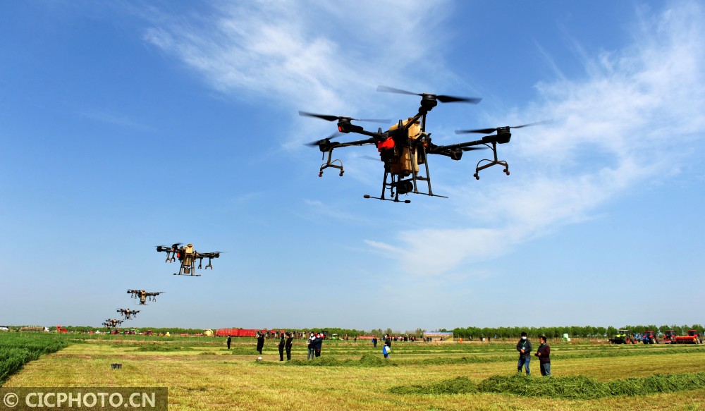 ↑2021年5月10日,在河北省农机推广“田间日”活动上,参会厂家进行无人机统防统治标准化作业演示。CICPHOT0/苑立伟 摄