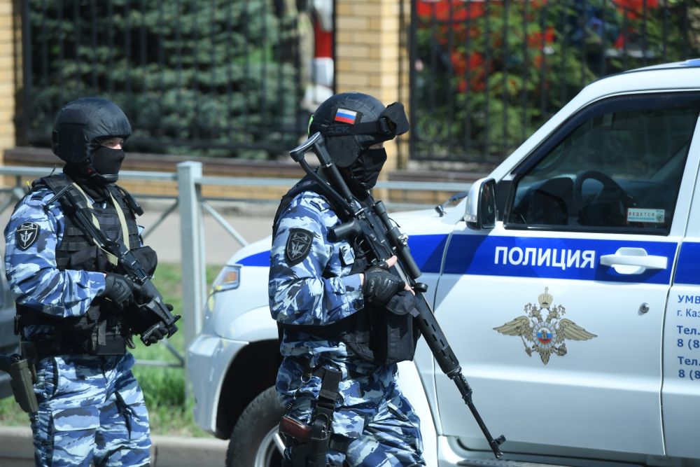 5月11日,防暴警察在俄罗斯喀山市发生枪击事件的学校外。(新华社/卫星社)