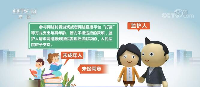 最高人民法院明确,未成年人未经其监护人同意,参与网络付费游戏或者网络直播平台“打赏”等方式支出与其年龄、智力不相适应的款项,监护人请求网络服务提供者返还该款项的,人民法院应予支持。
