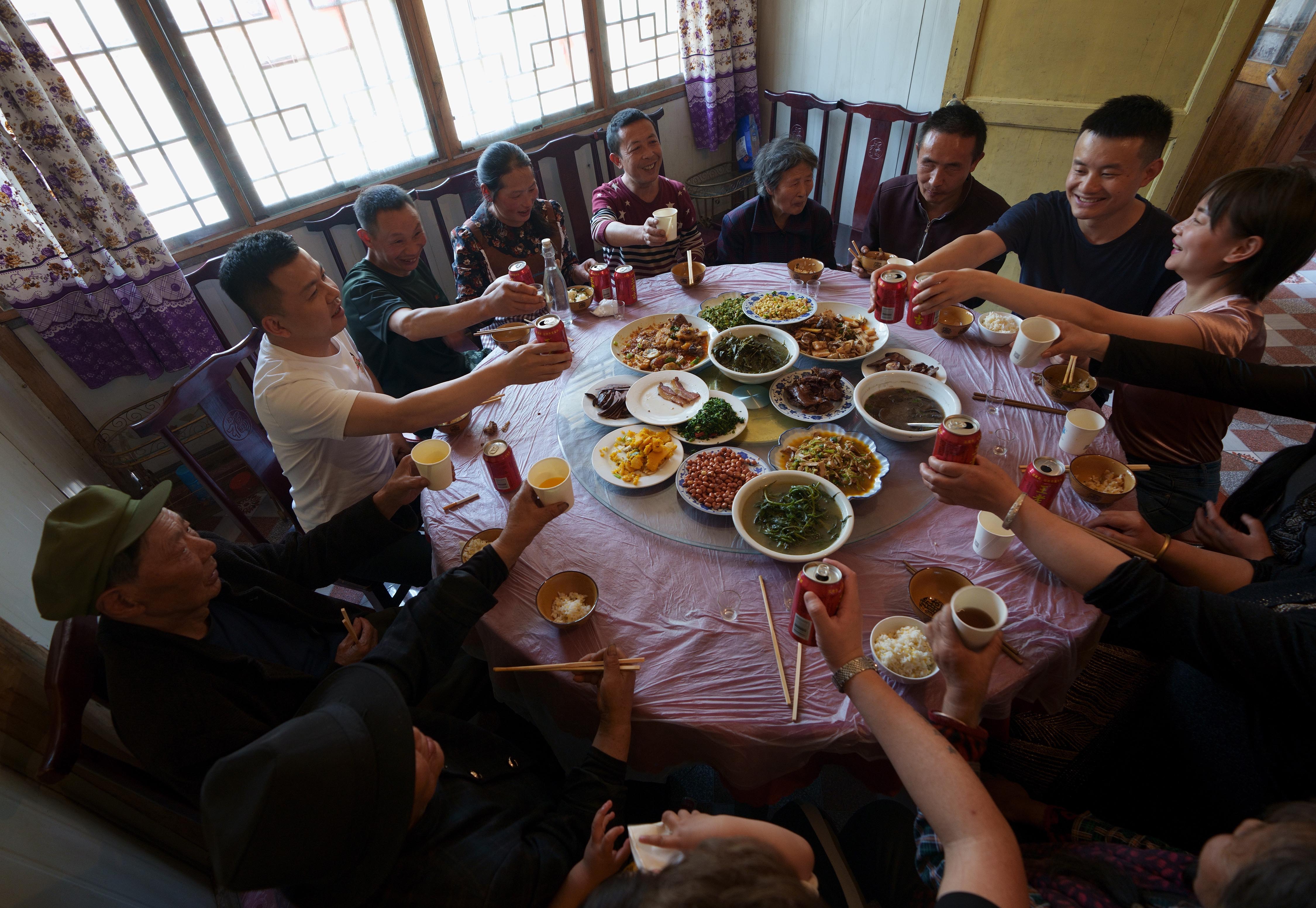 ↑5月4日,林兴聪、李芸香一家团聚在一起吃午饭。