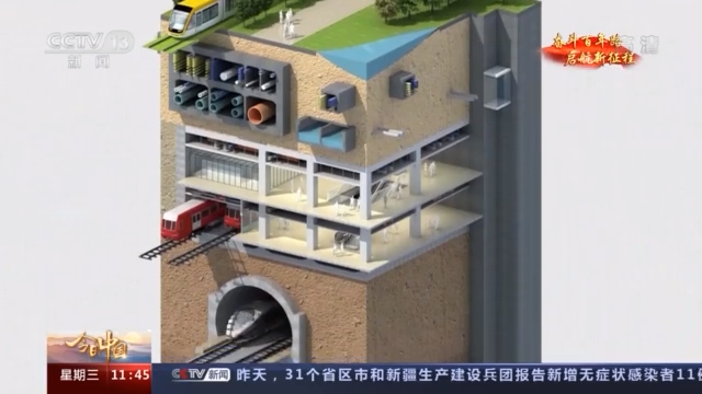 雄安新区地下综合管廊目前已贯通14.78千米,最大开挖深度22.5米,相当于7层住宅楼的高度,采用三层四舱结构:最上面是物流通道层,用于无人驾驶车,以及物流货运系统通行,运输通道宽度14.4米,高度7.8米,最宽处可容纳6台大货车并排行驶,相当于双向四车道;中间层是用来人员疏散和通风设备安装的夹层;最下面则是四个不同功能的管线舱,满足未来城市能源、电力、通讯、供水的传输需求。整个地下综合管廊都装有智能监控中心,包括监控、智能烟感等设备都会和5G挂钩。未来5G技术将被充分运用:如通过车辆无人驾驶技术,编好程序,车辆在地下可以通过5G信号,自动在停靠点卸货、装货,能有效缓解地面交通压力,提高城市运输效率。