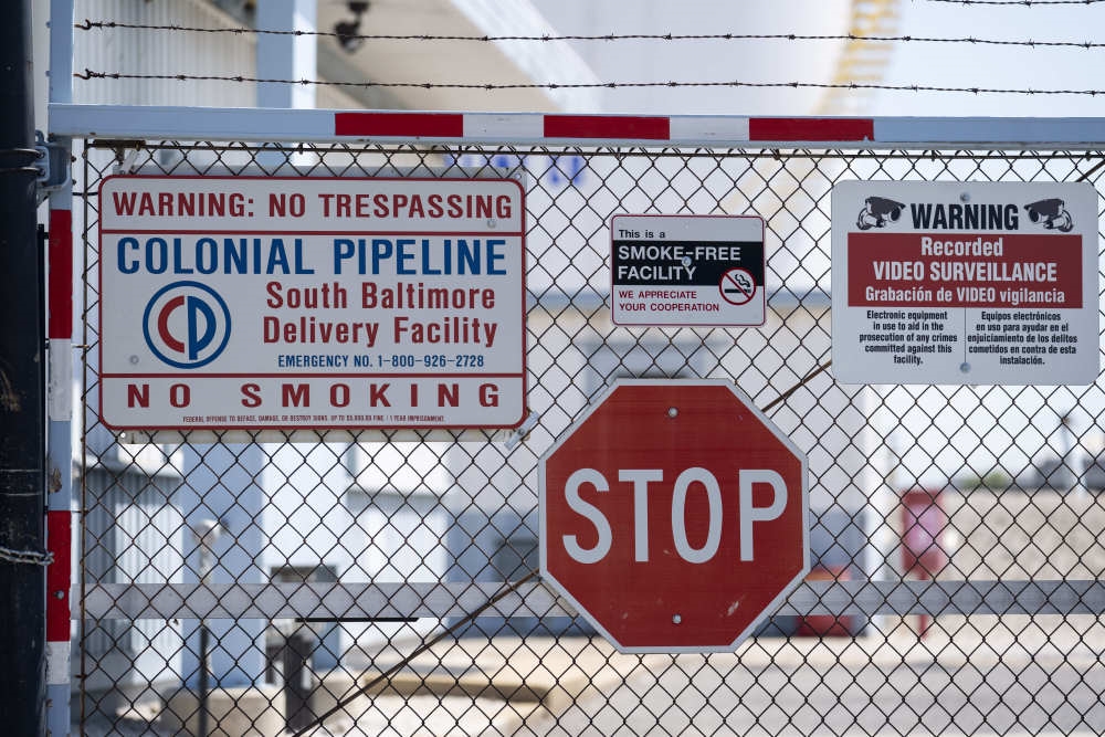 5月11日在美国马里兰州巴尔的摩市拍摄的科洛尼尔管道运输公司一处燃油供给设施外的警示牌。这家公司日前遭到网络黑客攻击,被迫关闭旗下成品油管道干线。(新华社记者刘杰摄)