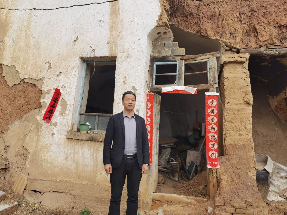张俊成在儿时住过的土窑前。新华社记者马晓媛摄