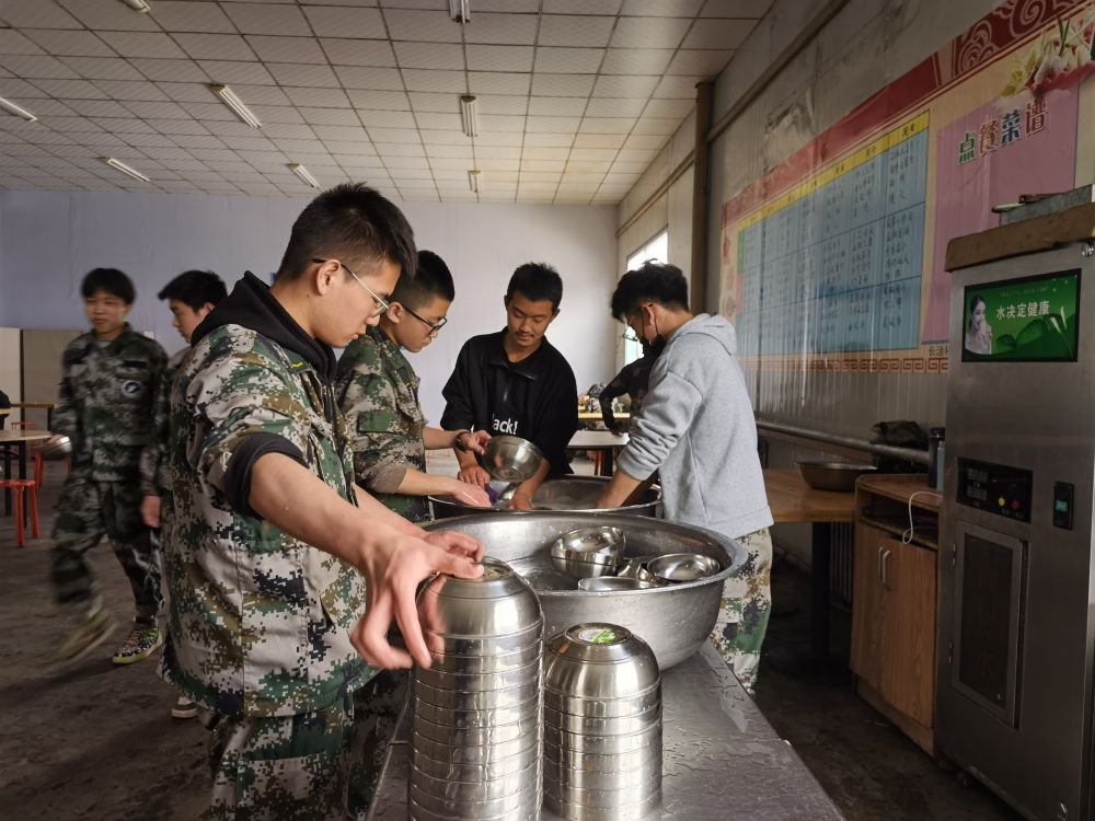 在这里,学生们早上要出操,饭前集合唱歌,晚上准时熄灯,消费只能用卡,每天设40元最高消费,以便引导他们体谅父母辛苦和避免攀比。