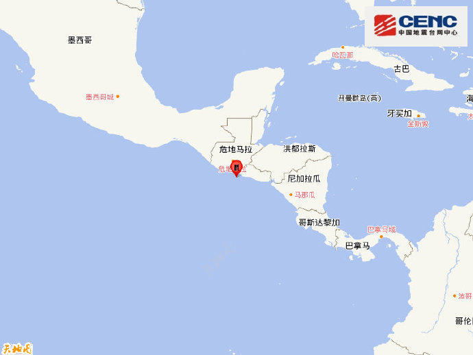 危地马拉沿岸近海发生5.7级地震 震源深度60千米