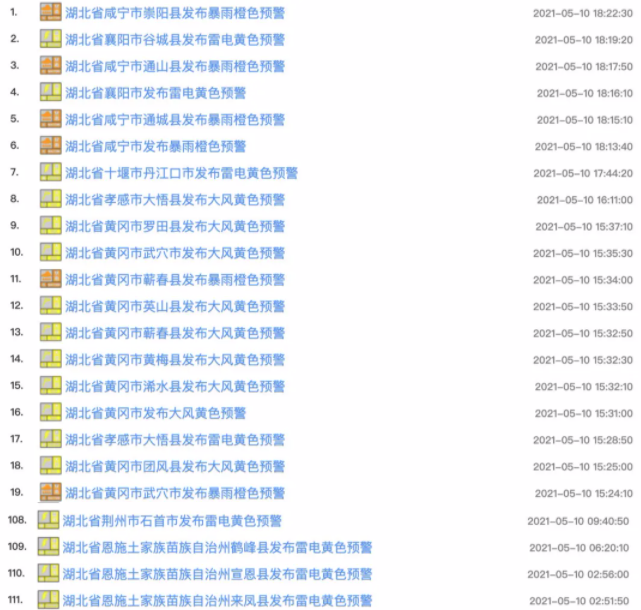 湖北省气象部门连发百余条预警提醒公众注意强降雨和强对流天气