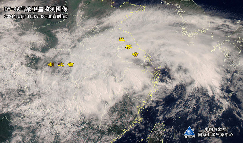 图1. FY-4A静止气象卫星真彩色合成图 2021年5月11日9:00时(来源于中央气象台)