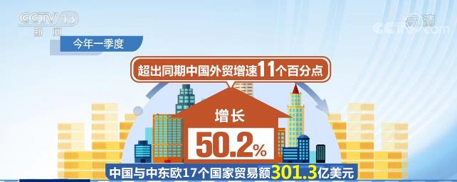 央视网消息:商务部有关负责人介绍,中国与中东欧17个国家双边贸易持续增长,今年一季度双边贸易额增长超过了50%。