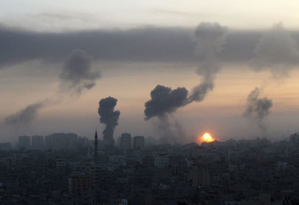 5月12日,以色列向加沙地带实施空中打击后,加沙城上空升起浓烟。(新华社发)
