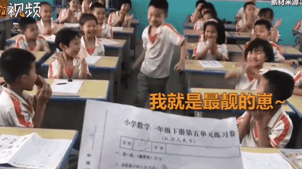 男孩考100分秒变“大哥”走出六亲不认步伐,全班鼓掌欢呼为他庆祝。