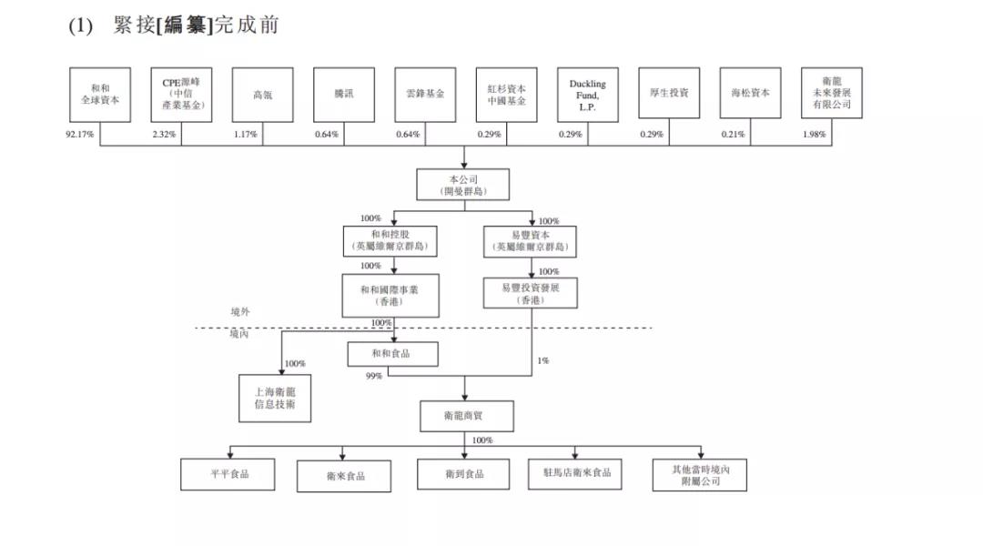 天眼查显示,卫龙在5月8日完成Pre-IPO轮融资,投资方大咖云集,CPE源峰(中信产业基金)、高瓴资本、红杉资本中国、腾讯投资、云锋基金在列。这是卫龙首次引进外部资本,也是其上市前唯一一轮融资。