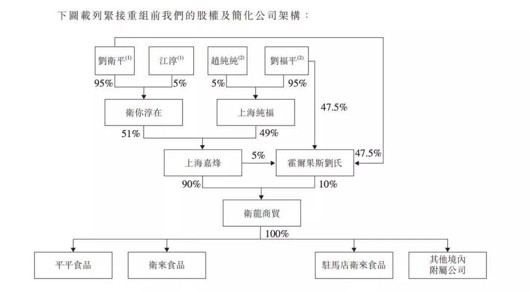 聆讯集显示,卫龙2018年7月6日在开曼群岛成立为获豁免有限公司。目前卫龙直接和间接拥有25家附属公司,其中有6家对卫龙母公司业绩、资产、负债或业务产生主要影响。