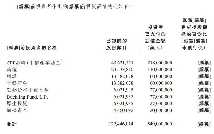 同日,中信产业基金(CPE源峰)、高瓴、腾讯、云锋基金、红杉资本中国基金、厚生投资、海松资本等与公司设立股份购买协议,支付的每股成本为4.4836美元。