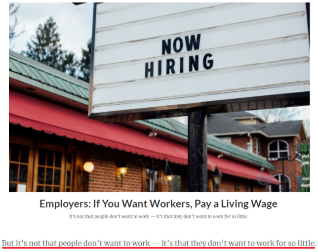 美国政策研究学会12日发文指出,“并不是人们不想工作,而是他们不想为这么少的钱工作”。事实证明,并不存在“劳动力短缺”,只是缺少那些愿意为“饥饿工资”而工作的人。