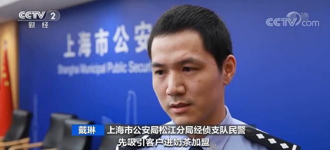 上海市公安局松江分局经侦支队民警 戴琳:从网络部开始一直到运营部,其实没有实际的履约能力,先吸引客户进奶茶加盟这个套路当中,最后放任客户关门停业。