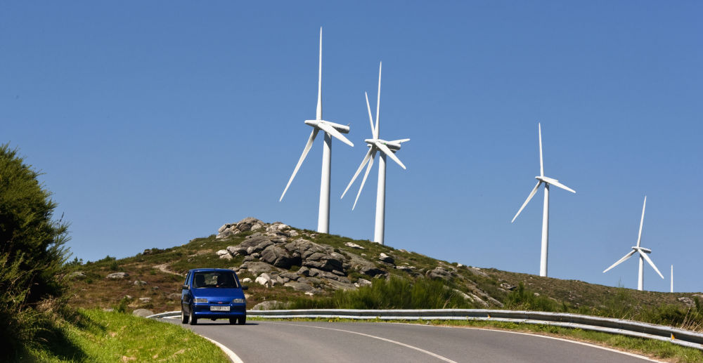 西班牙西北部加利西亚自治区公路边矗立的风车。(新华社/伽玛)
