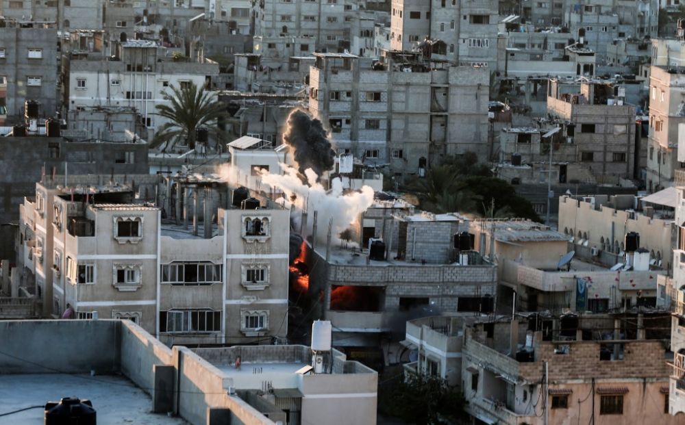 5月13日,加沙地带城市拉法遭以色列空袭。(新华社发,哈利德·奥马尔摄)