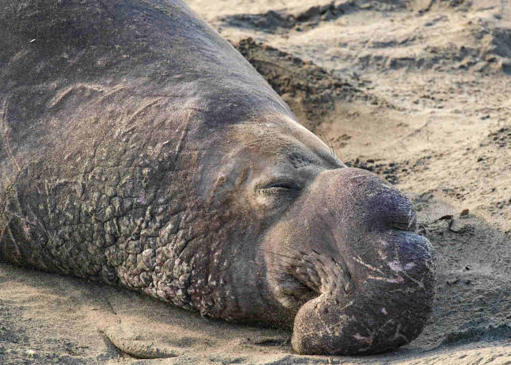 2019年12月8日,在美国加利福尼亚州圣西米恩,一只象海豹在沙滩上休息。(新华社发,乔尔·莱纳摄)