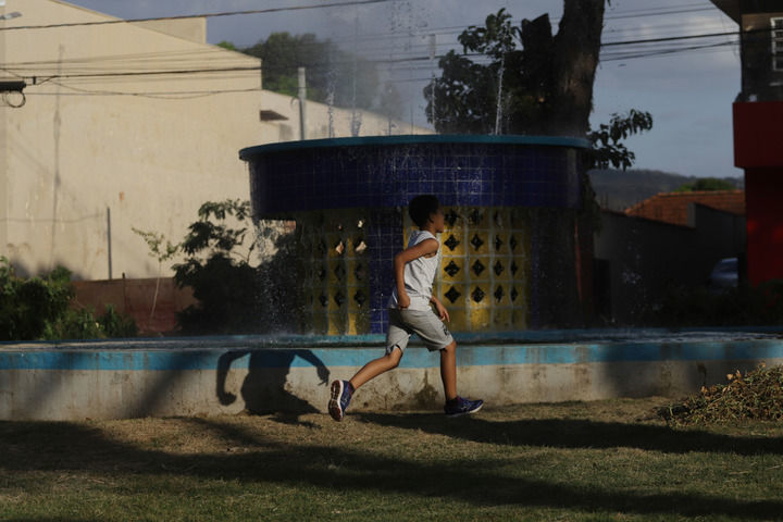 5月11日,在巴西塞拉纳市,一名男孩在路上奔跑。新华社发(拉赫尔·帕特拉索摄)
