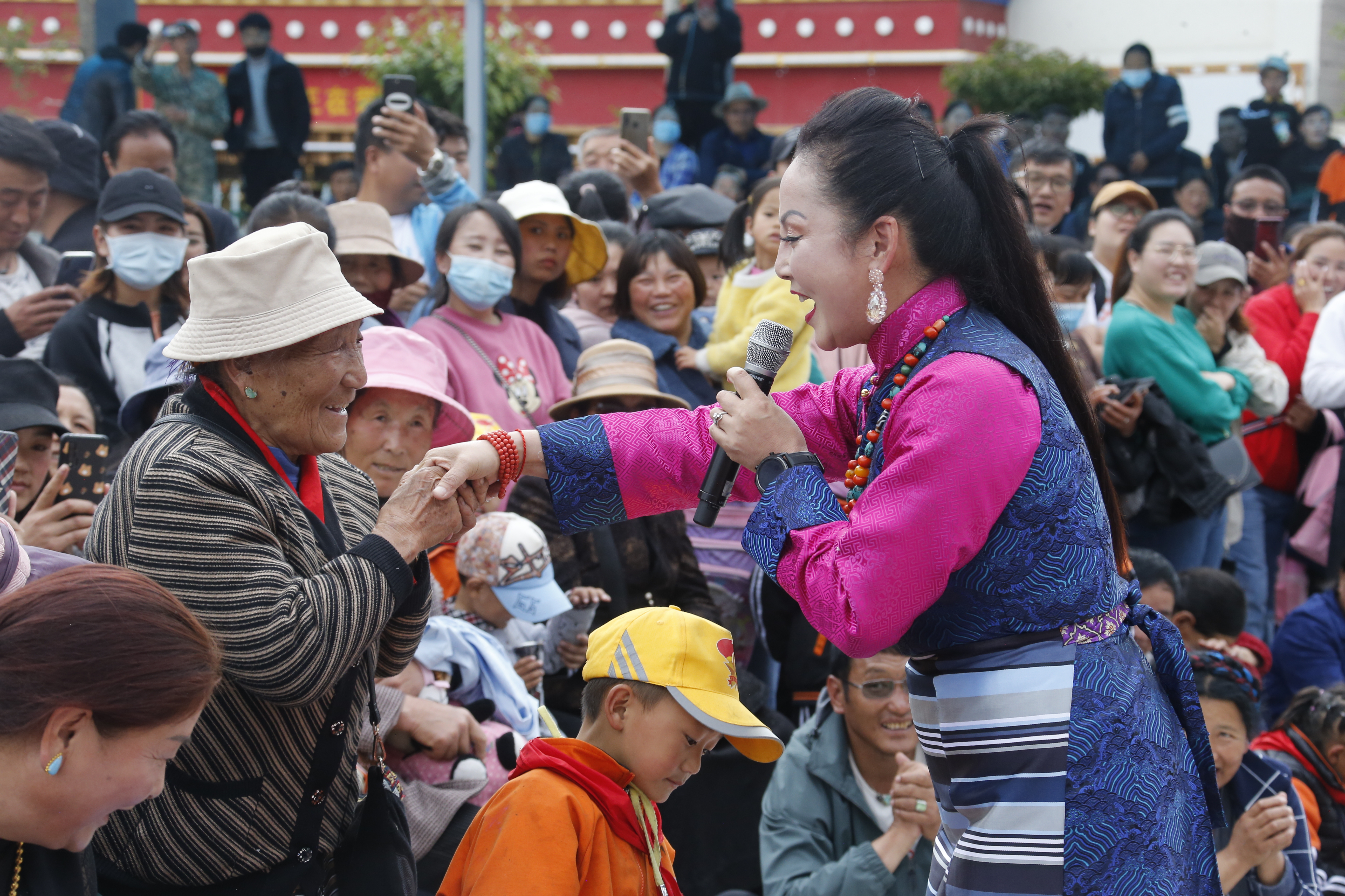 新华社拉萨5月14日电(记者白少波、格桑朗杰)“能走路就会跳舞,会说话就会唱歌。”能歌善舞的西藏各族群众在和平解放70周年之际,用歌声抒怀,记录历史。今年62岁的德西美朵被誉为“西藏的夜莺”,作为藏族女高音歌唱家,她的歌声歌颂着新西藏,赞扬着新生活。“我半辈子的演艺生涯都是在西藏度过的,因为我的根在这,心在这。”
