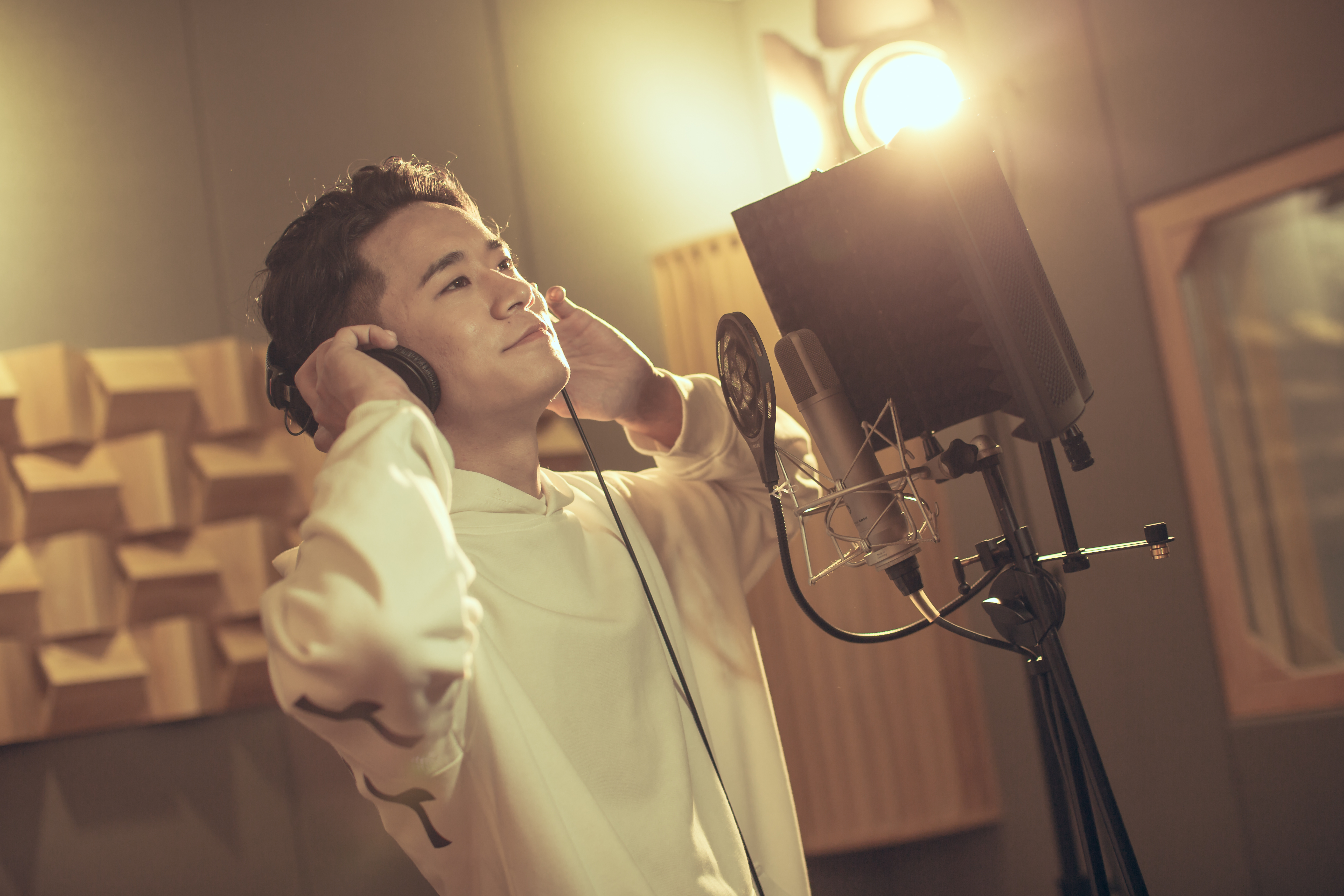 巴邓顿珠在录音棚录制歌曲。新华社发(受访者供图)