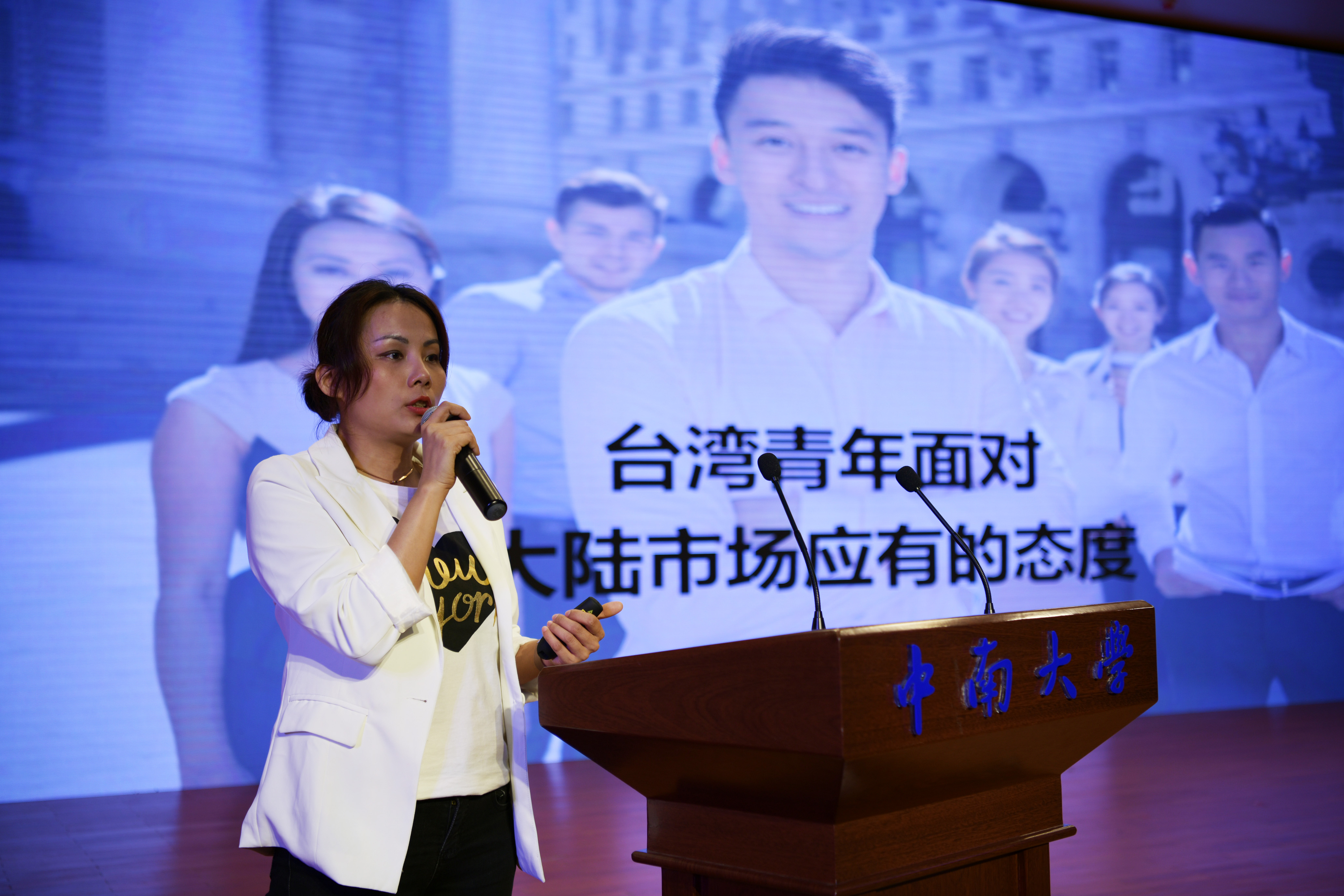 这是台湾青年在活动现场分享自己在大陆的发展经历。新华社发