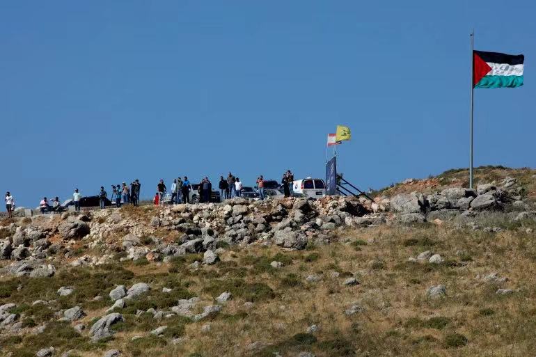 △黎南边境示威民众挥舞巴勒斯坦旗和真主党旗 图片来源AFP