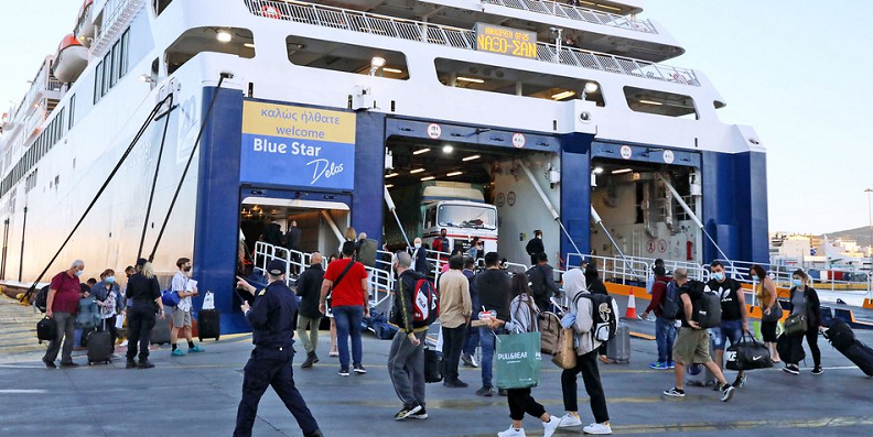 当地时间5月14日早6时开始,希腊政府取消国内旅行限制。当天上午,大批民众涌向雅典附近的比雷埃夫斯港码头,他们手持检测证明登船前往各个热门岛屿度假,其中包括一些来自奥地利以及美国的游客。