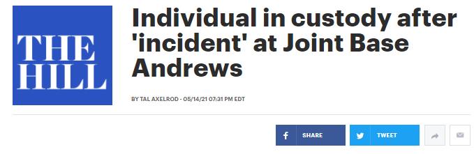 据报道,安德鲁斯基地14日晚证实,“安全部队人员正在对事件进行处理”。基地官员表示,“在问题得到解决之前,基地大门将一直关闭”。