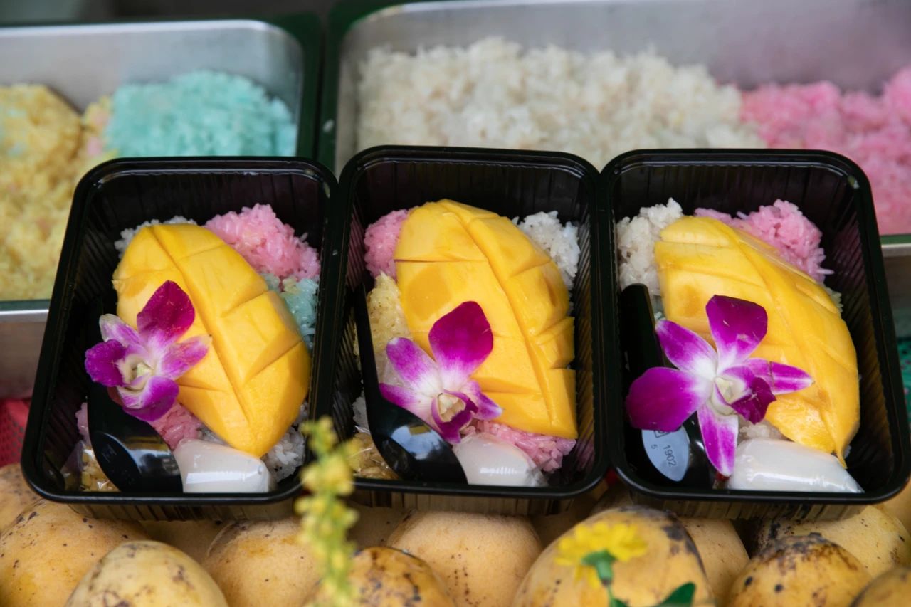 在泰国普吉举办的斋节集会上拍摄的芒果糯米饭 新华社记者 张可任 摄