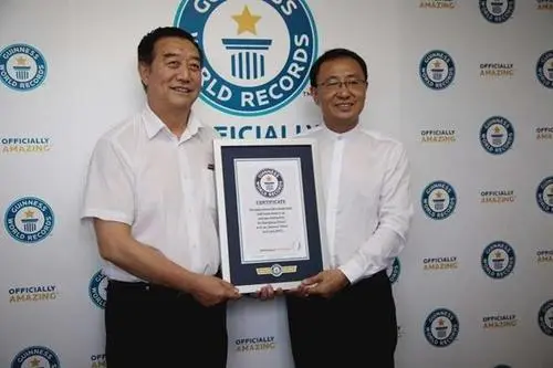 (远投达人徐长清(右)获颁吉尼斯世界纪录奖状)