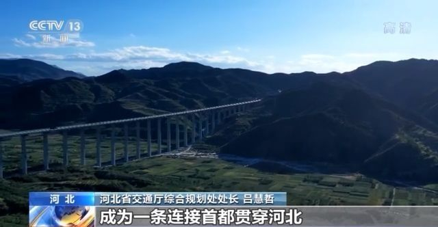 河北省交通厅综合规划处处长 吕慧哲:未来太行山高速公路,将与周边的11条高速公路和数十条的国省干线公路相连接,辐射面积进一步扩大到了2.6万平方公里,成为一条连接首都贯穿河北、直至中原的一条南北的高速公路大通道,对首都及周边地区的休闲度假便捷出行,带动沿线地区乡村振兴和经济社会发展,具有重要的意义。