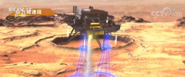 航天科技集团五院火星探测器进入舱总体主任设计师 董捷:这时候只剩下着陆平台和火星车,他们一起来完成后面的动力减速过程。减速过程是依靠一台主发动机来做减速,整个过程就是类似于我们以往的月球表面的着陆,完全靠一台发动机,将这个探测器减速到(火星)表面,把整个速度全部减下来。