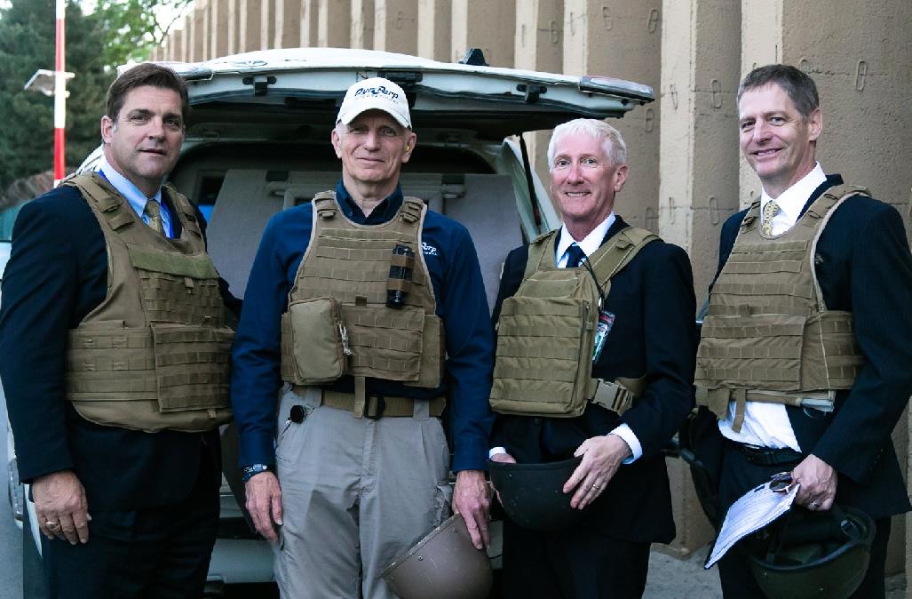 △DynCorp的前任CEO路易斯·冯·泰尔(右一)2016年在阿富汗。图片来源:DynCorp官方推特