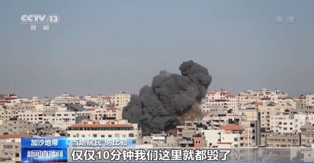 当地居民 巴哈:空袭发生的时候我正好在家里,根本不知道很多炸弹从天而降,真的是太突然了。现在这边整个区域已经完全被炸毁了,仅我们离开那会儿,以军就投掷了七枚炸弹。