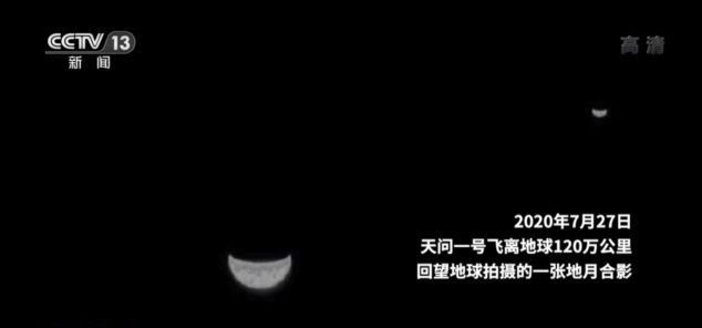 这是2020年7月27日,天问一号在飞离地球约120万公里处,回望地球利用光学导航敏感器,对地球、月球成像,拍摄的一张地月合影。