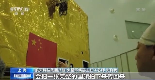航天科技集团八院、火星环绕器主任工艺师 张则梅:到时候都展开大约差不多有一米多的一根杆,然后斜着来拍国旗,它会把一张完整的国旗拍下来传回来。国旗当时也是调研了很久,它上面的这种涂层能长期地忍受火星的环境,也不会损伤,所以到时候拍出来照片会很鲜活的一张。