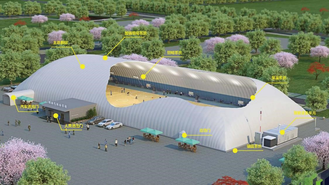 同时,项目采用EPC(设计施工总承包)建设模式,有效缩短了整体建设周期。在该馆建筑“结构”的选型设计中,设计团队选定了高强度聚酯纤维膜材作为气膜结构。“通过一套智能化控制的机电设备向结构内部送风并形成正压,将建筑外壳支撑起来并形成主体结构,室内无需再设置任何框架及支撑梁柱。”铁五院冬残奥会备战训练馆项目负责人张学坤表示,这是目前国内建造时间最短、建设用材最少、运营能耗最低、节能环保性最高的新型场馆建设结构。