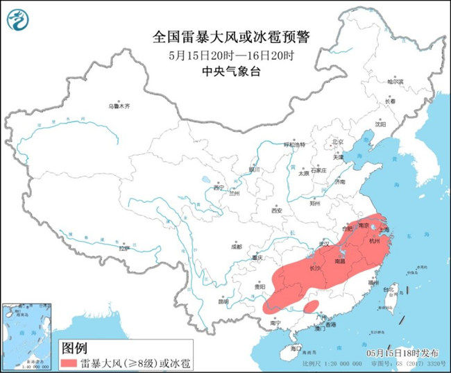 预计5月15日20时至16日20时,安徽中南部、江苏中南部、上海、湖北东部、湖南、江西、浙江、福建西北部、贵州东部、广西中北部、广东中部和西北部等地的部分地区将有8-10级雷暴大风,局地可达11-12级,上述地区局地伴有冰雹天气;安徽中南部、江苏中南部、上海、湖北东部和南部、湖南、江西、浙江、福建北部、贵州中东部、广西中北部、广东西北部等地的部分地区将有短时强降水天气,小时雨强30-50毫米,局地可达70毫米以上。详情>>>
