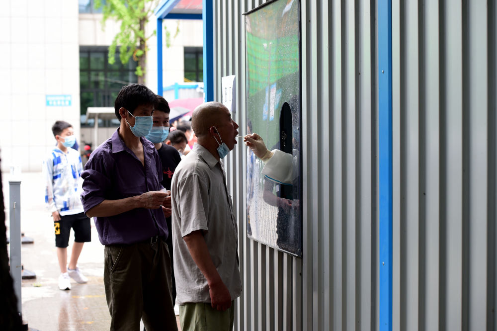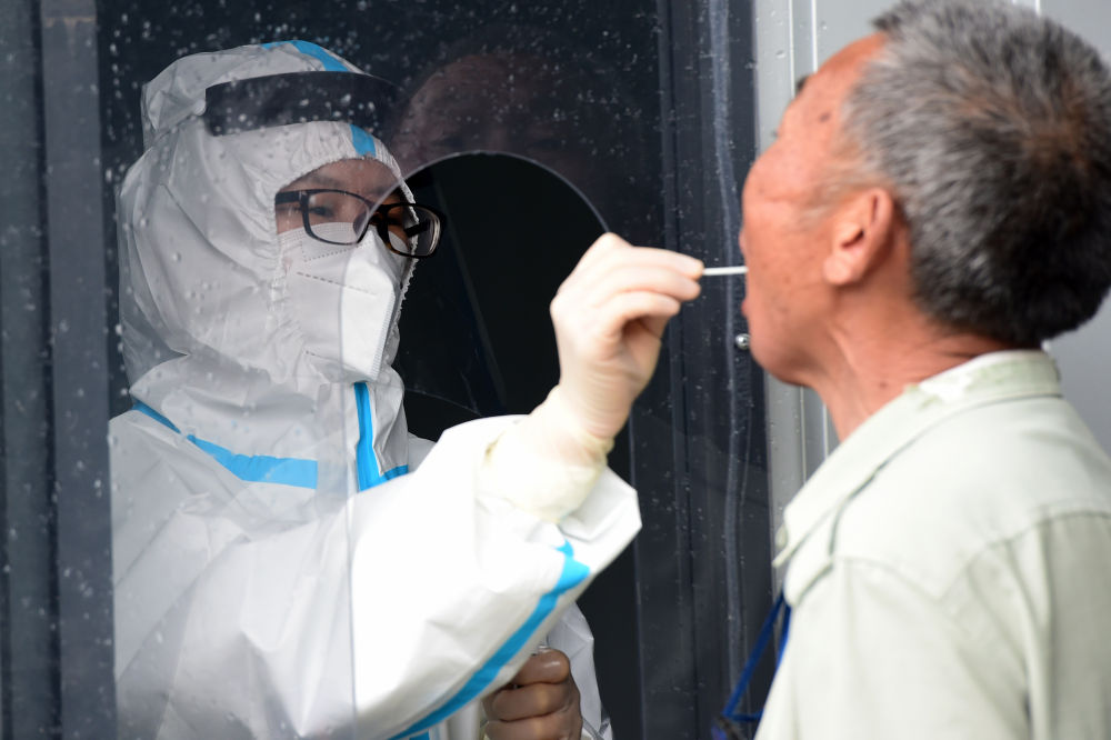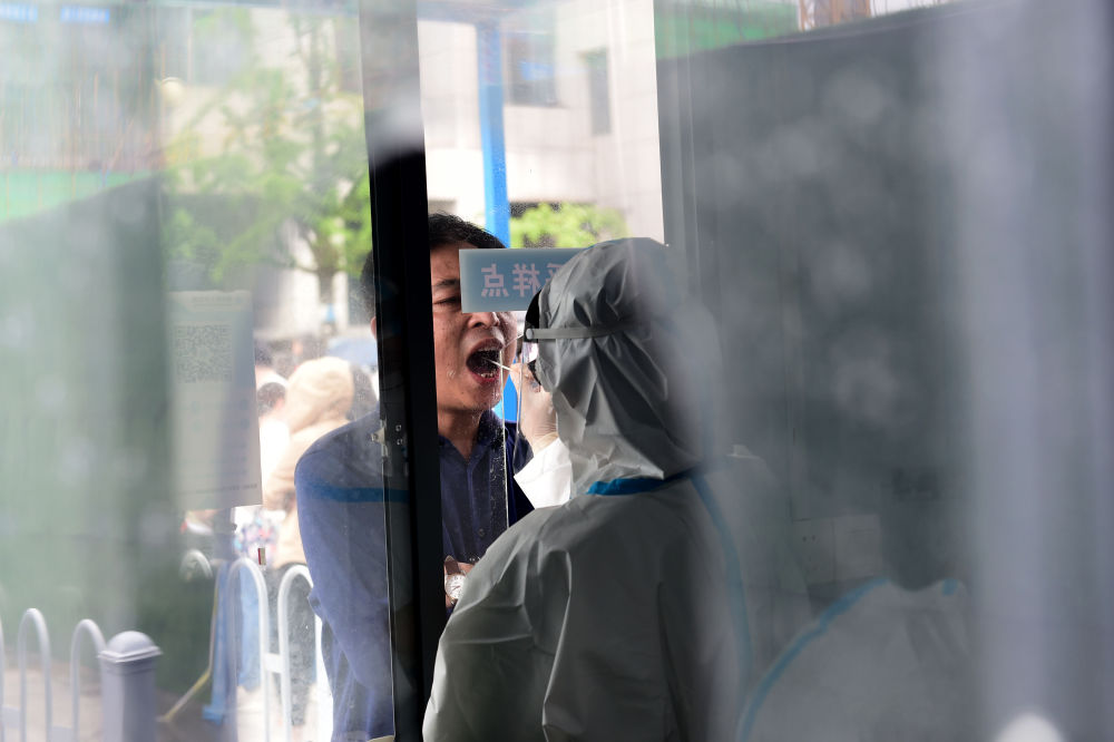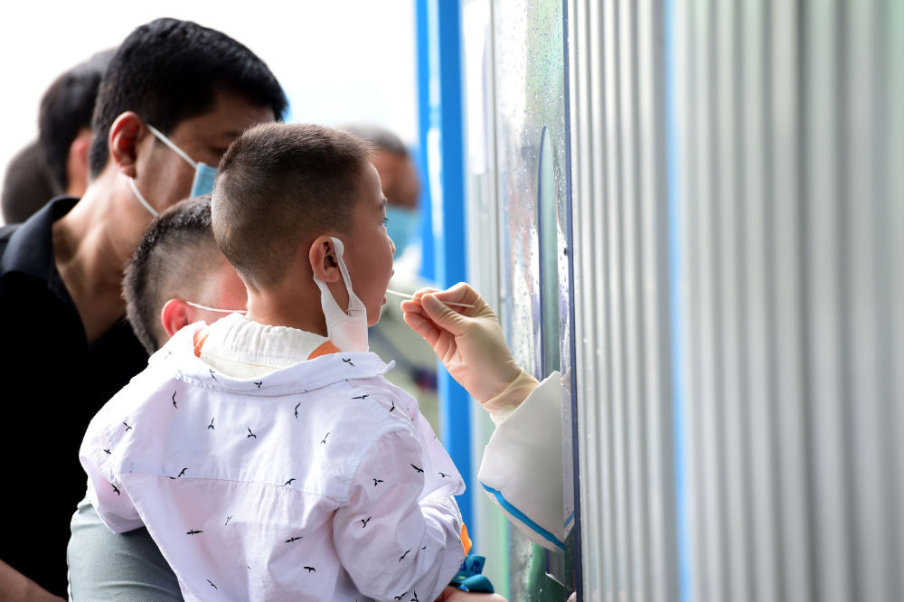 ↑5月15日,在肥西县人民医院,市民接受核酸检测。