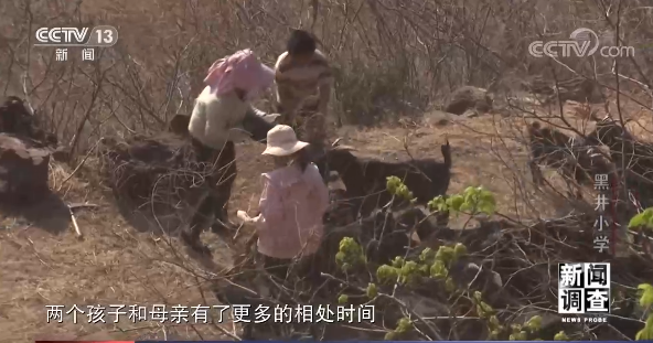 爸妈不在家的时候,李建蓉和弟弟周末都会跟着爷爷奶奶去放牛。这个春天,妈妈回到了家里,两个孩子和母亲有了更多的相处时间。