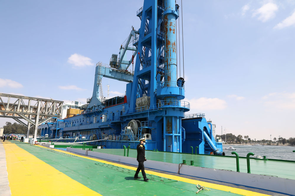 悬挂巴拿马国旗的重型货轮“长赐”号3月23日在苏伊士运河新航道搁浅,造成航道堵塞。经过连续数天救援,搁浅货轮3月29日成功起浮脱浅。4月,苏伊士运河管理局采购的首艘大型绞吸式挖泥船交付,用以拓宽运河南段航道。