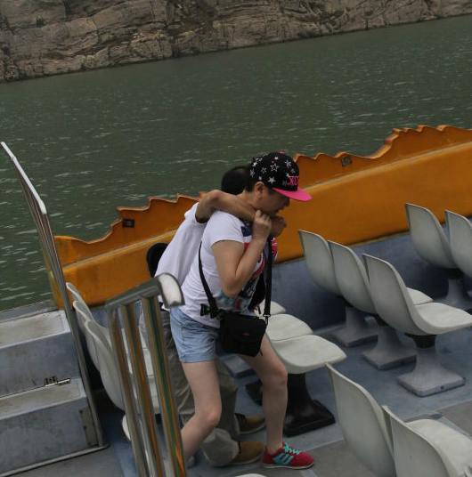 2015年,青儿随同张仲一行乘坐邮轮前往重庆。途中登顶奉节白帝城时,因为遭遇电梯停电,残疾队员全都是由志愿者和家属从邮轮上背下来,再一步一步背上山顶的。300多级台阶,青儿来回背了四趟,最后一趟下来的时候,全身衣服湿透,嘴唇发青,张仲看到后哭了。那年青儿将近50岁。