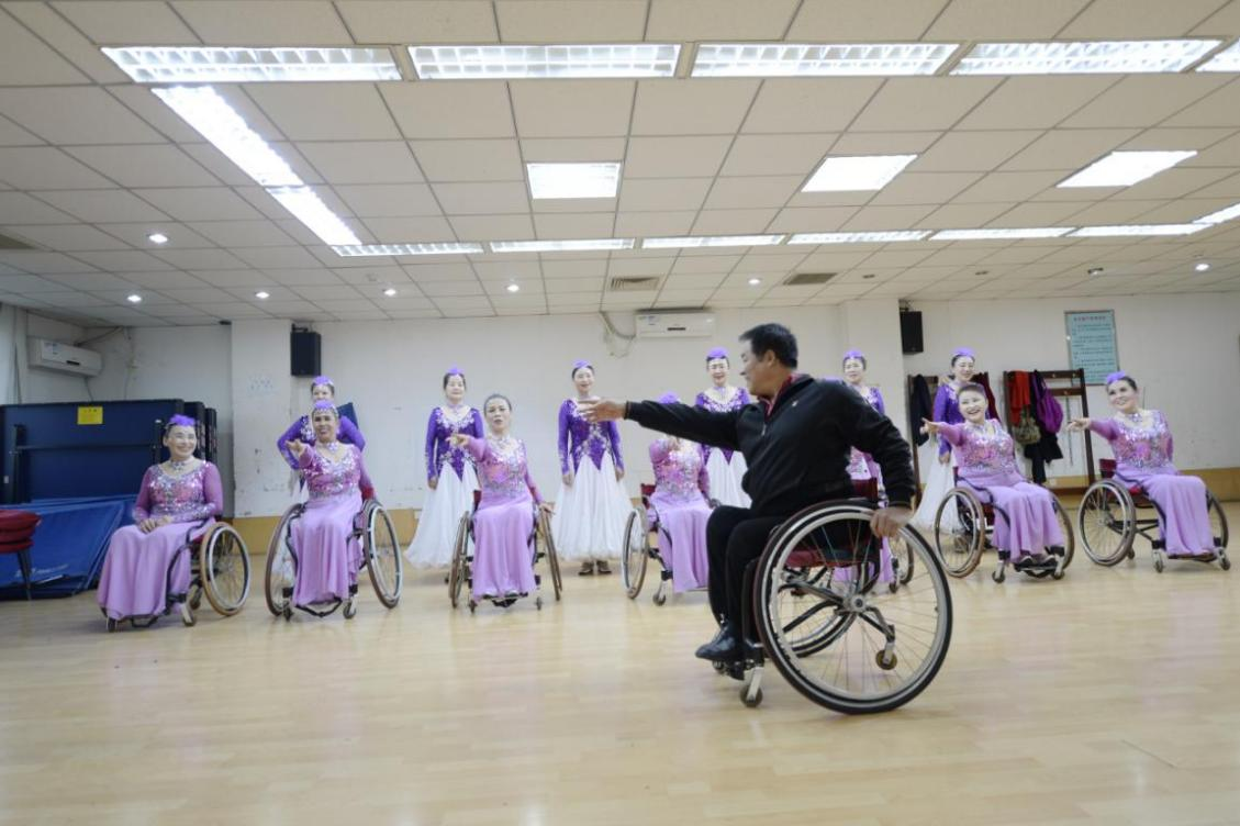 培训结束后,张仲组建了北京轮椅舞蹈队,他邀请董京莉一起。那时,队里少时仅三四个人,多时30多个人,其中年龄最大的71岁,30多岁的董京莉是队里最年轻的队员。