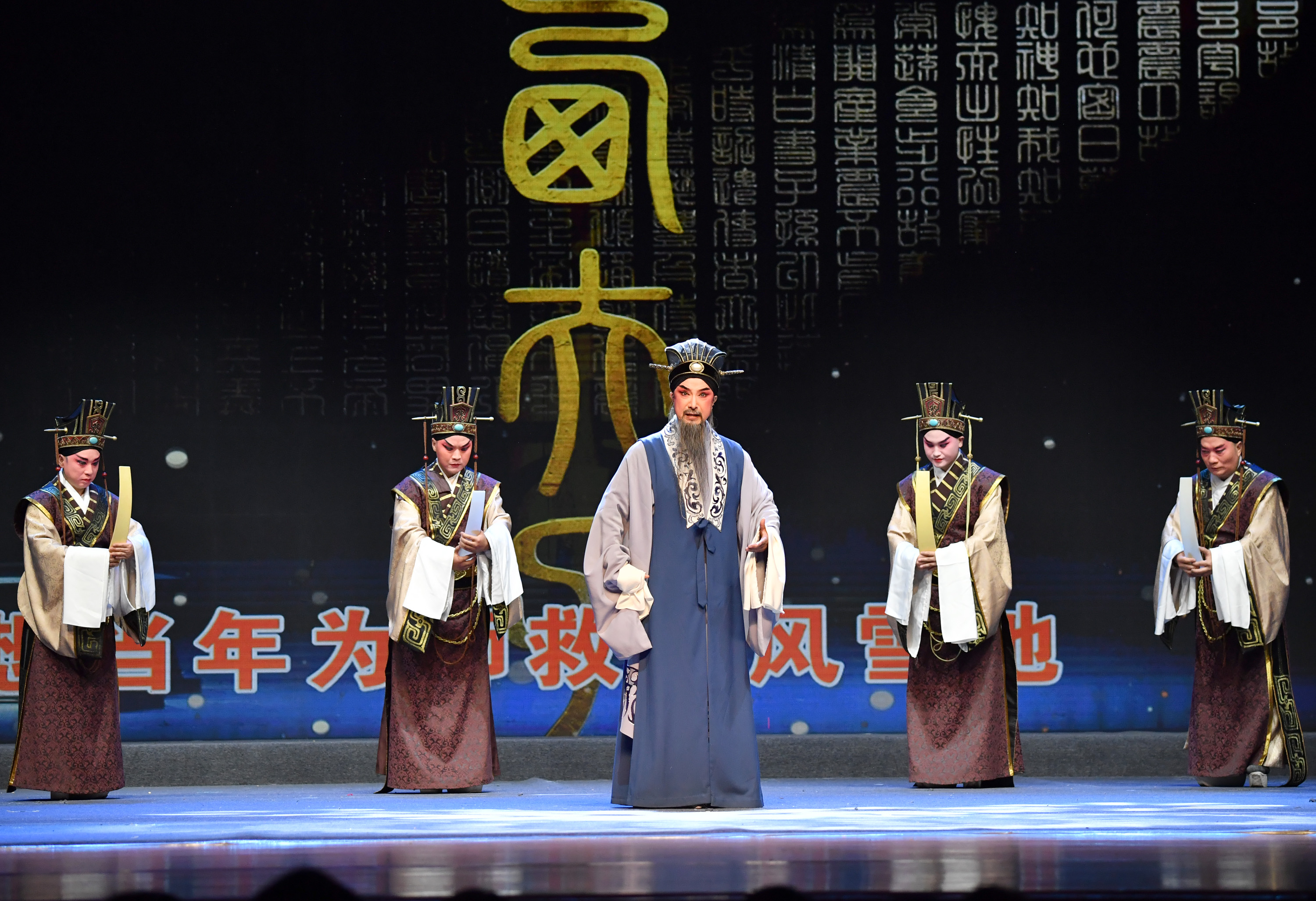 5月15日,演员在开幕演出上表演秦腔《关西夫子·天地有知明镜悬》。