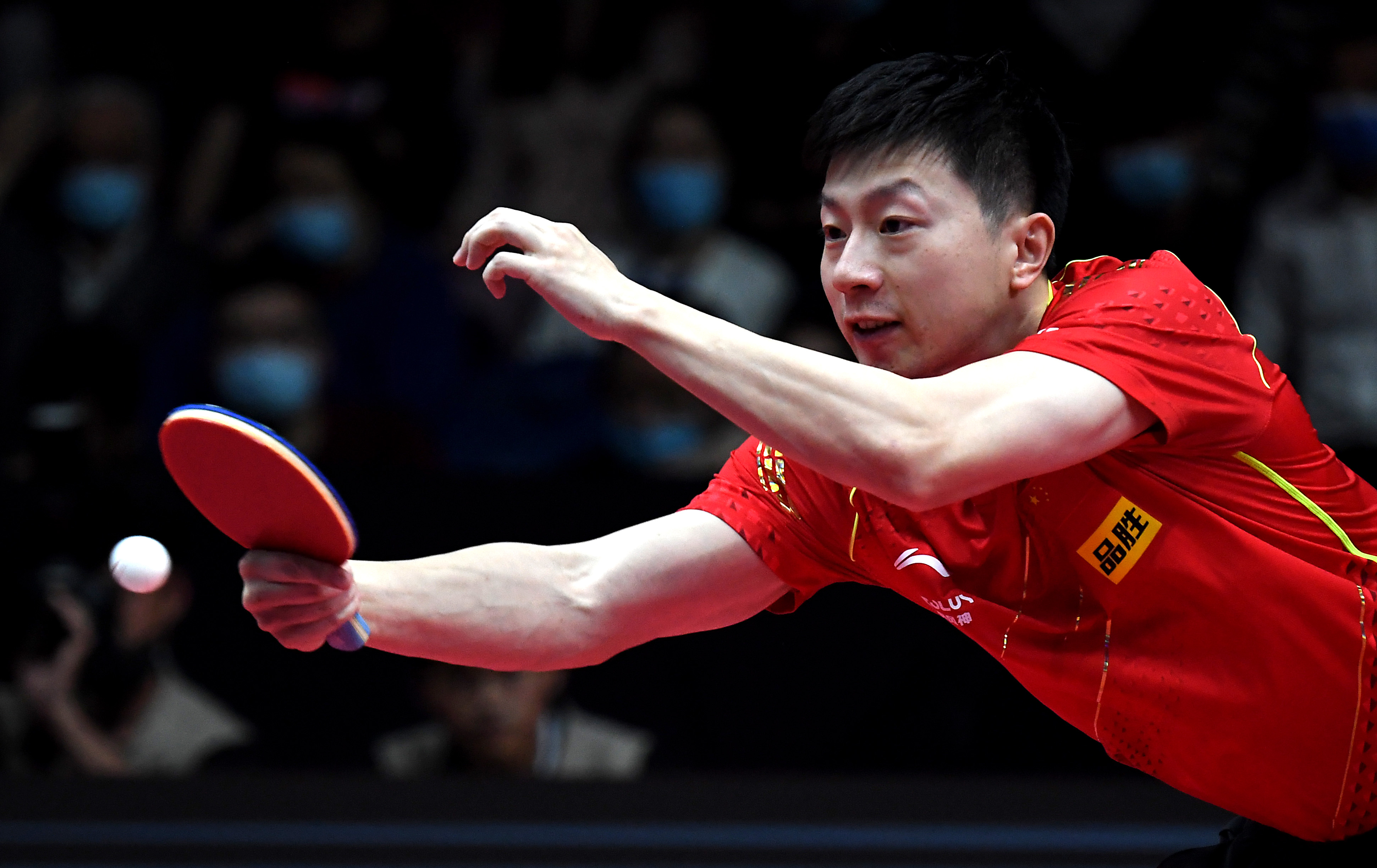 5月4日,马龙在比赛中回球。新华社记者李安摄